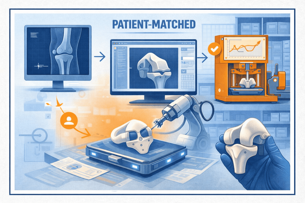 I dispositivi Patient-Matched sono dispositivi adattati alle caratteristiche individuali del paziente, ma sviluppati e fabbricati attraverso un processo industriale controllato dal fabbricante.