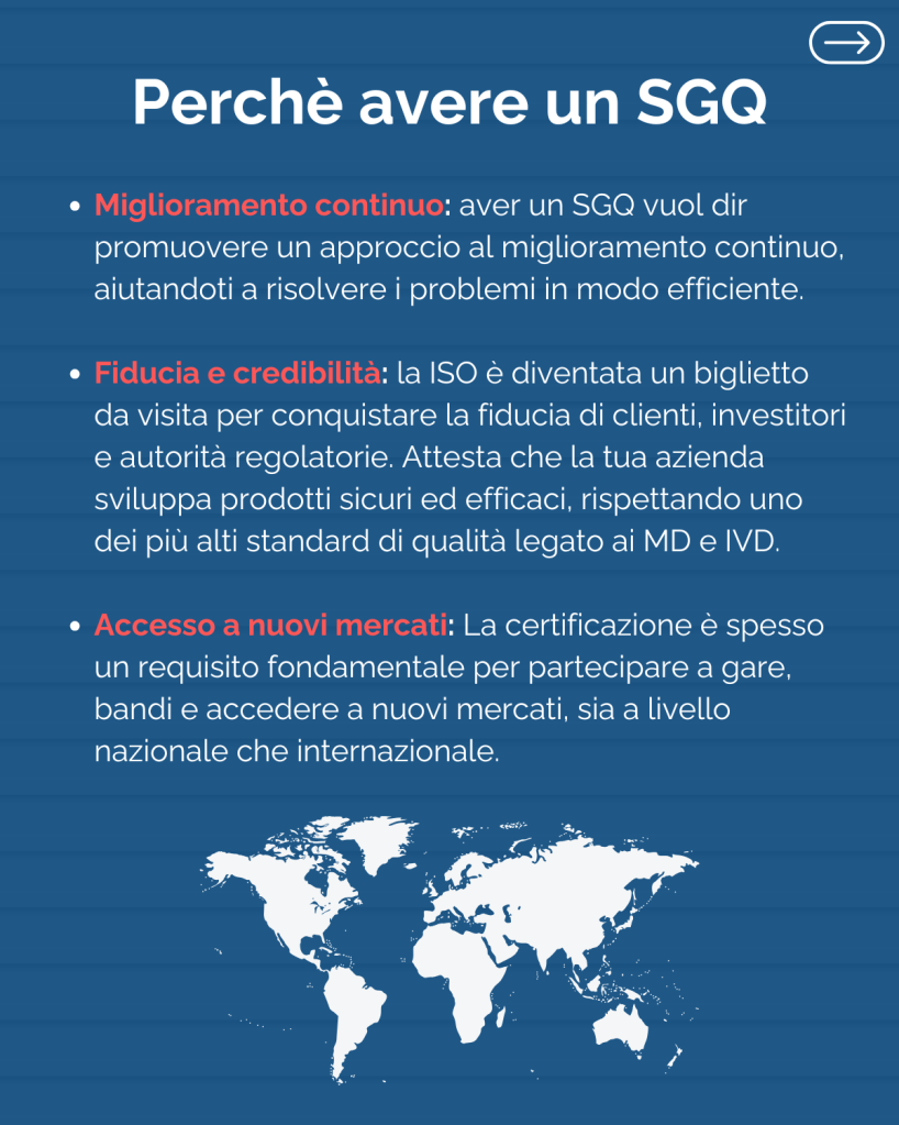 Indipendentemente dalla dimensione della vostra azienda, la necessità di avere un Sistema di Gestione della Qualità (SGQ) sta sempre più diventando un requisito regolatorio per l’accesso al mercato nel settore medicale (MD \ IVD).